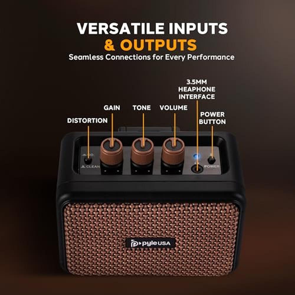 Pyle 5W Portable Mini Electric Guitar Amplifier, Battery Powered Desktop Practice Amp, Bluetooth, Full Range Speakers, Tone Controls, Lightweight, Headphone Jack, Black