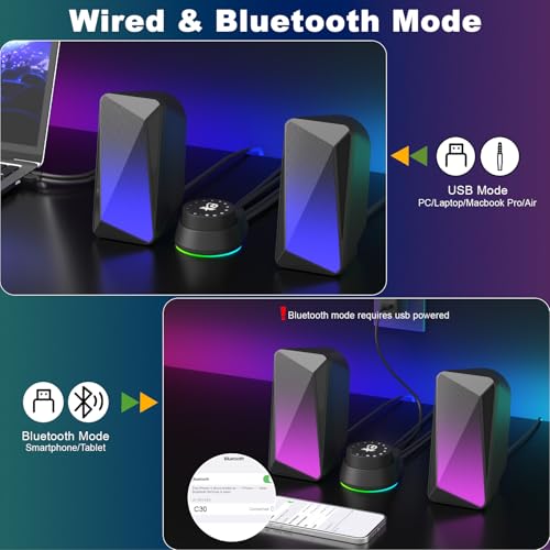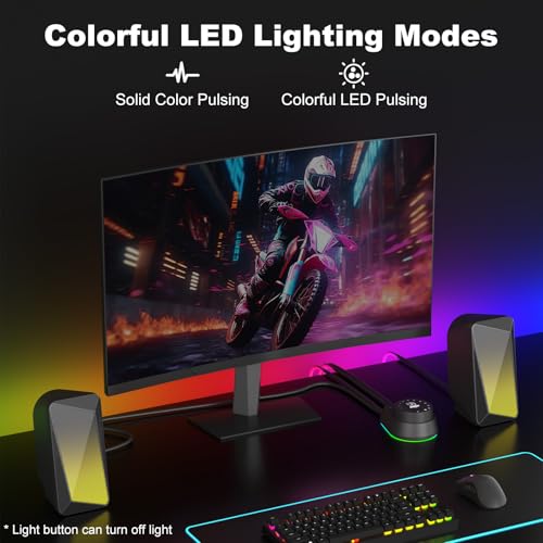 Speakers Wired | SOULION C30 Bluetooth Computer Speakers 2.0 PC Speakers for Desktop Monitor | Premium Sound Quality with Pulsing LED Flame Lights
