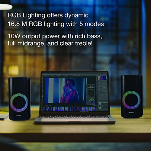 Verbatim RGB | Verbatim Gaming Stereo Desktop Speakers Bluetooth 5.0 | Premium Immersive Gaming Experience