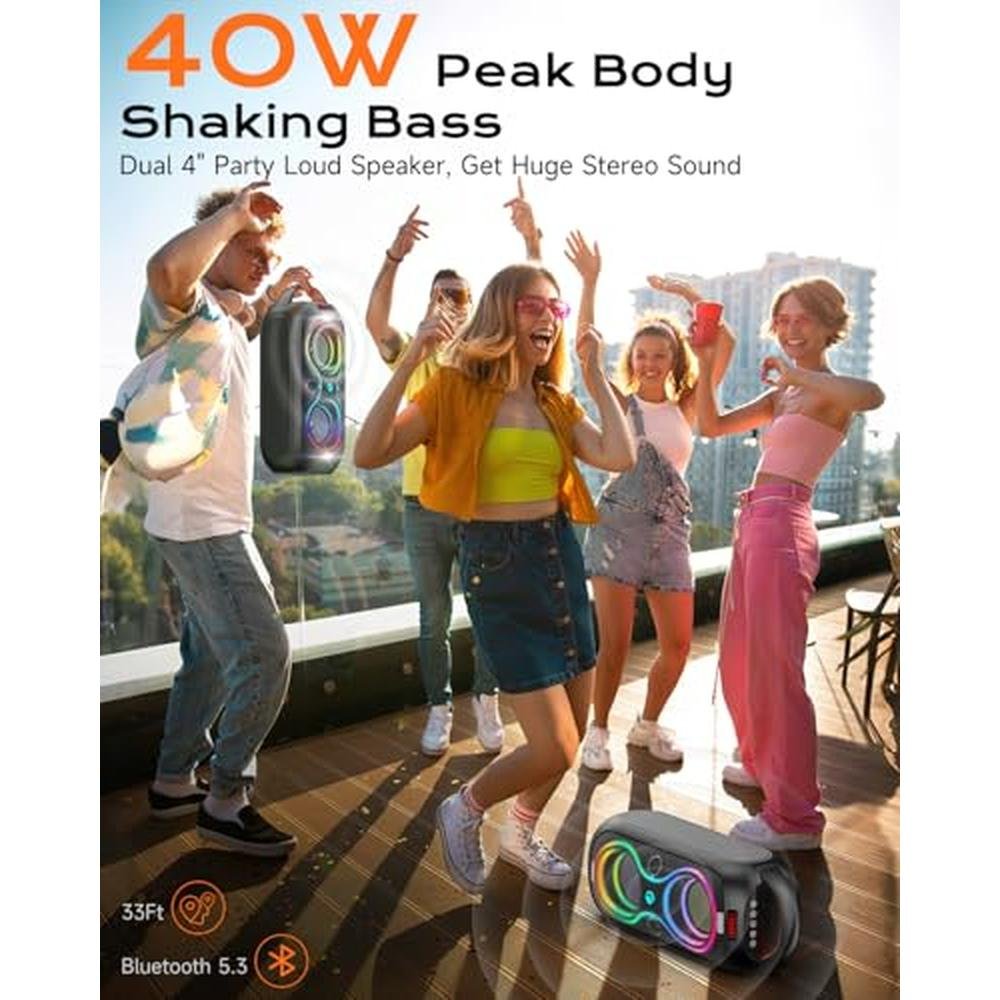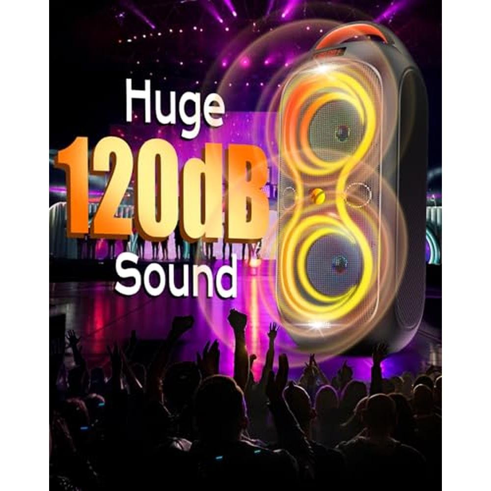 - 40W Powerful Sound PeakExperience true, immersive sound with up to 40W output powerful peak ,reaching up to 120 decibels for loud, clear audio that fills any space. Perfect for both indoor and outdoor events, this speaker brings the party to life with high-quality sound.