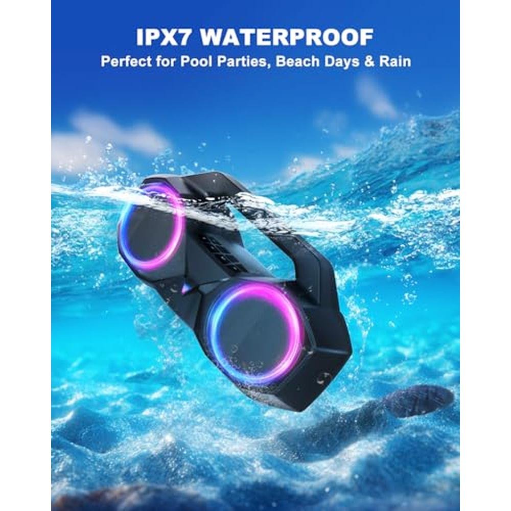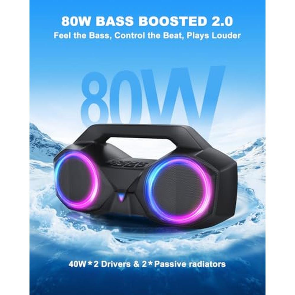 Bluetooth Speaker 80W(Peak)Loud with Bass, 20H Playtime, IPX7 Waterproof, RGB Lights, TWS, Large Portable Wireless Speakers for Outdoor, Home, Party, Pool, Beach, Tailgating, Gym, Work, Gifts (Black)
