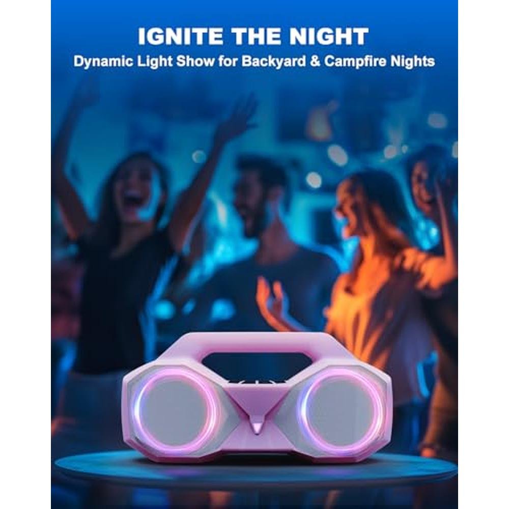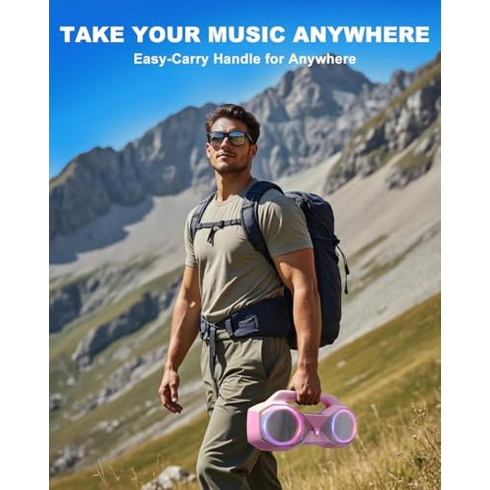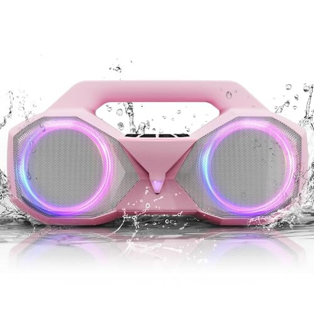 Bluetooth Speaker 80W(Peak)Loud with Bass, 20H Playtime, IPX7 Waterproof, RGB Lights, TWS, Large Portable Wireless Speakers for Outdoor, Home, Party, Pool, Beach, Tailgating, Gym, Work, Gifts (Pink)