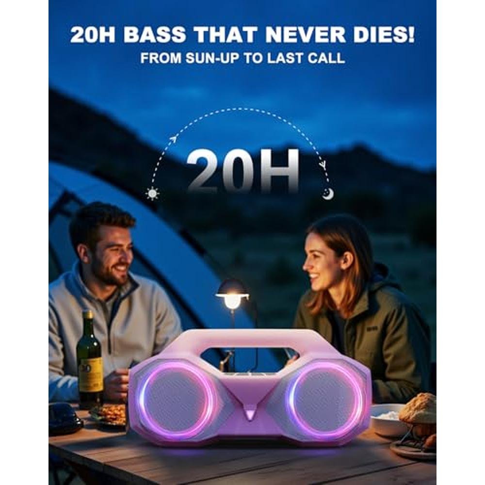 - 20H BATTERY LIFE: Keep the Party Going. This large bluetooth speaker without constantly searching for a charger, allowing you to enjoy music from sunrise yoga to midnight campfire stories. Perfect for road trips or music festivals.