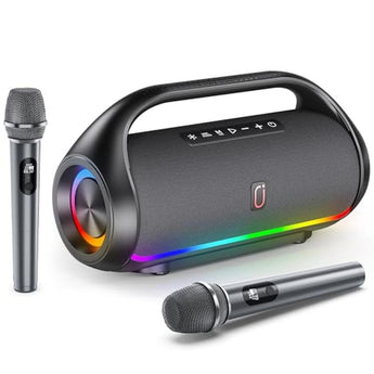 HWWR Portable Bluetooth Speaker with 2 Wireless Microphones, IPX5 Waterproof Speakers with Deep Bass & LED Lights, Loud Stereo Portable Speaker for Outdoor Indoor Home Parties Hiking Camping