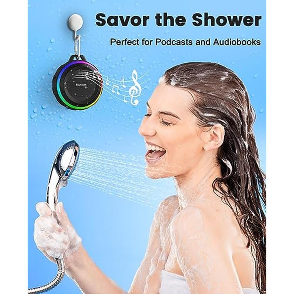 Kunodi Bluetooth Shower Speaker with IPX7 Waterproof, Dynamic Lights, Crisp Clear Sound, True Wireless Stereo, Clip Portable for Pool Beach Boat Kayak Float Golf Gift