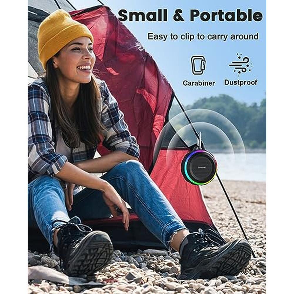 - Portable & Clip on: Small compact size designed for the outdoors! Portable Speakers with reinforced carabiner. Suitable for backpack, bike, tent, golf, or hanging in the lot