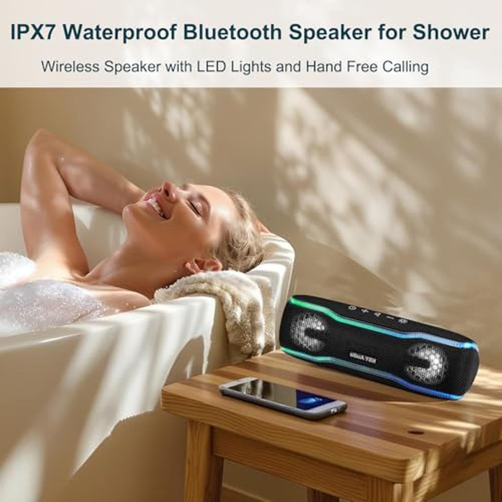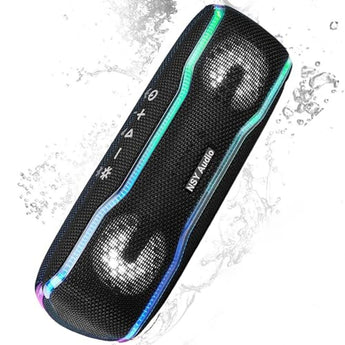 NSY Audio IPX7 Waterproof Bluetooth Speaker, 24H Playtime, LED Lights, TWS Pairing, Small Wireless Speaker for Outdoor Party, Beach, Travel, Pool, Gifts, Black