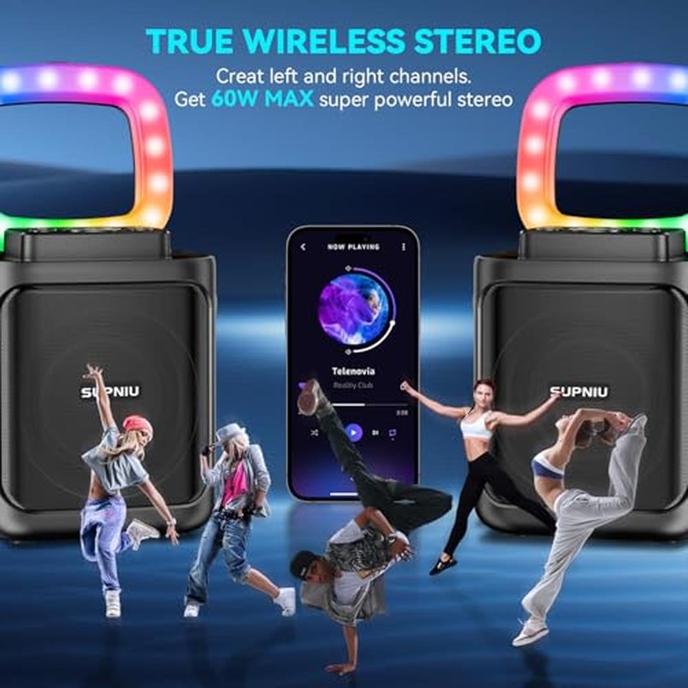 - True Wireless Stereo (TWS) PairingConnect two SUPNIU S50 wireless speakers through a single device to get immersive stereo sound and loud volume of up to 60W, enjoy the shocking beats that this Loud Small speaker fills every corner of the room, ready for any time Bring bolder sound to bigger gatherings.