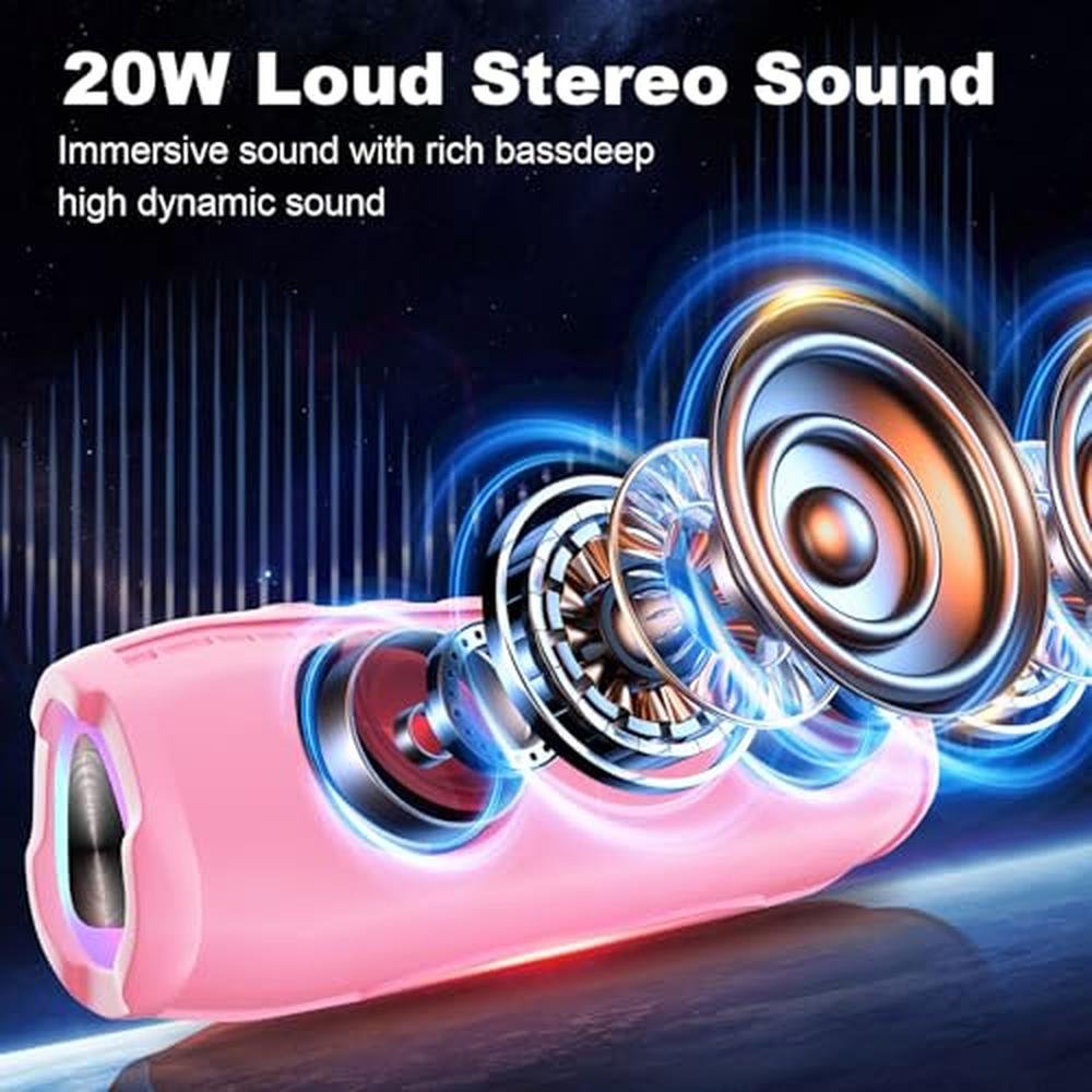 • Loud Stereo Sound & Dual PairingBluetooth speaker equips with 20W of stereo audio drivers speaker and an advanced digital signal processor, which pumps out crisp treble, detailed mids, and specially enhanced bass at any volume. The speaker supports True Wireless Stereo function, Enjoy true cinema surround sound with Dual Pairing, a truly unparalleled listening experience.
