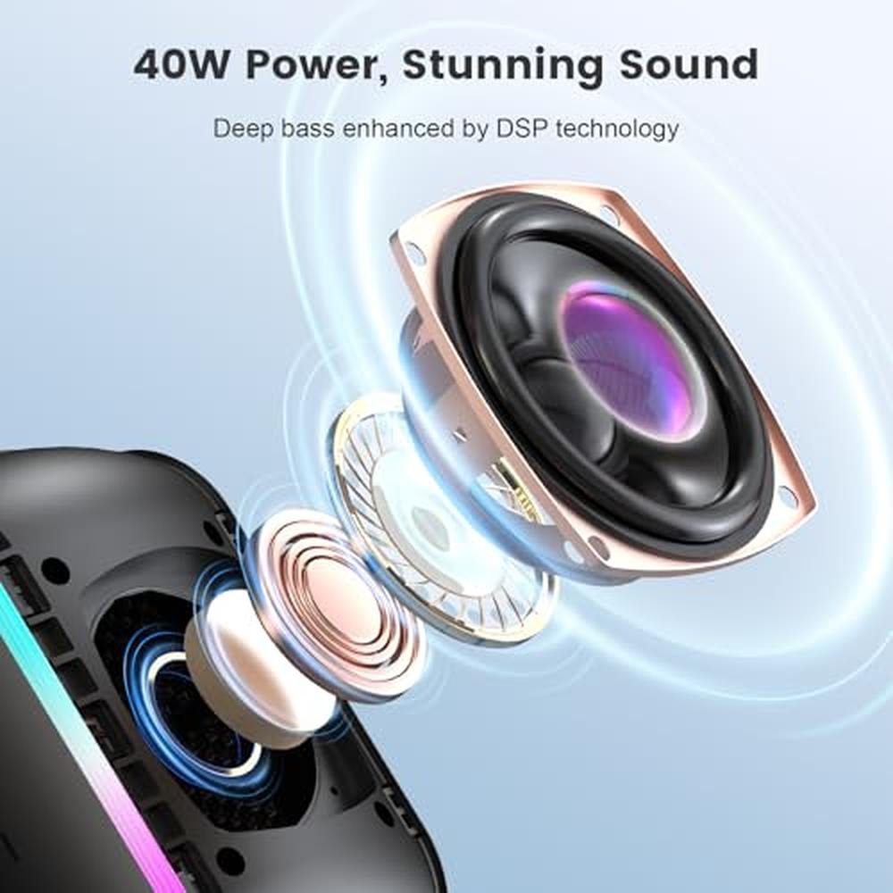 ZICOROOP Bluetooth Speaker, 40W Portable Wireless with Stereo Bass, Bluetooth 5.3, IPX6 Waterproof Shower Speakers, LED Lights, TWS Pairing, 12H Playtime for Outdoor Beach Party, Ideal Music Gift