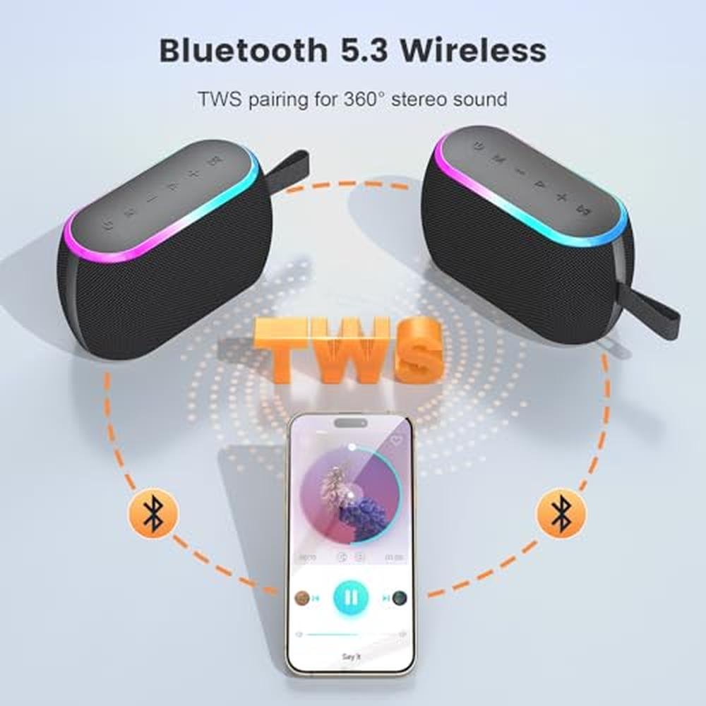 - Bluetooth 5.3Connect quickly and stably to your devices with Bluetooth 5.3. Wireless speakers offers a stronger connection, faster pairing and better audio quality. Its compatible with a wide range of devices including smartphones, tablets and laptops, making it a breeze to stream your preferred content without any hassle.