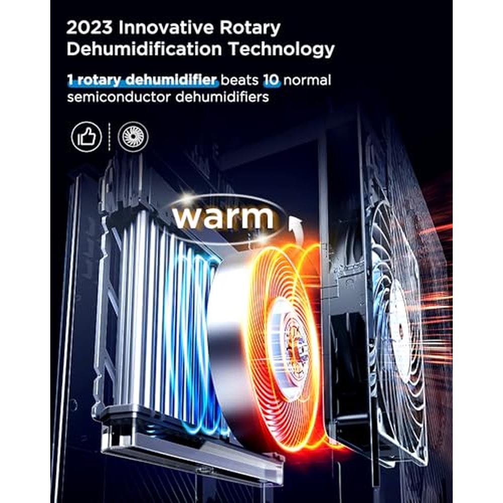 - Rotary 10X fast dehumidification system for efficient moisture removal, capable of removing up to 3000ml of water per day