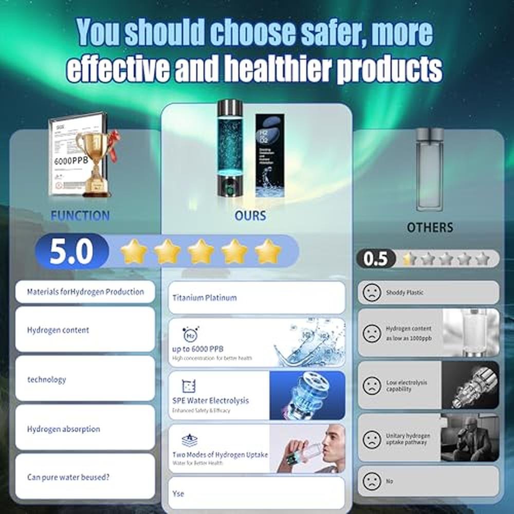 5.0 New Upgraded Hydrogen Water Bottle - Hydrogen Concentration up to 6000 PPBSGS-Certified Hydrogen Generator 2025 SPE/PEM Technology Odorless Double Hydrogen Content for Sports/Home/Office/Travel