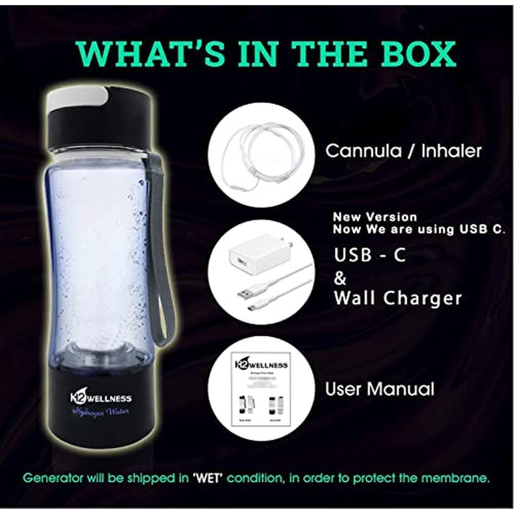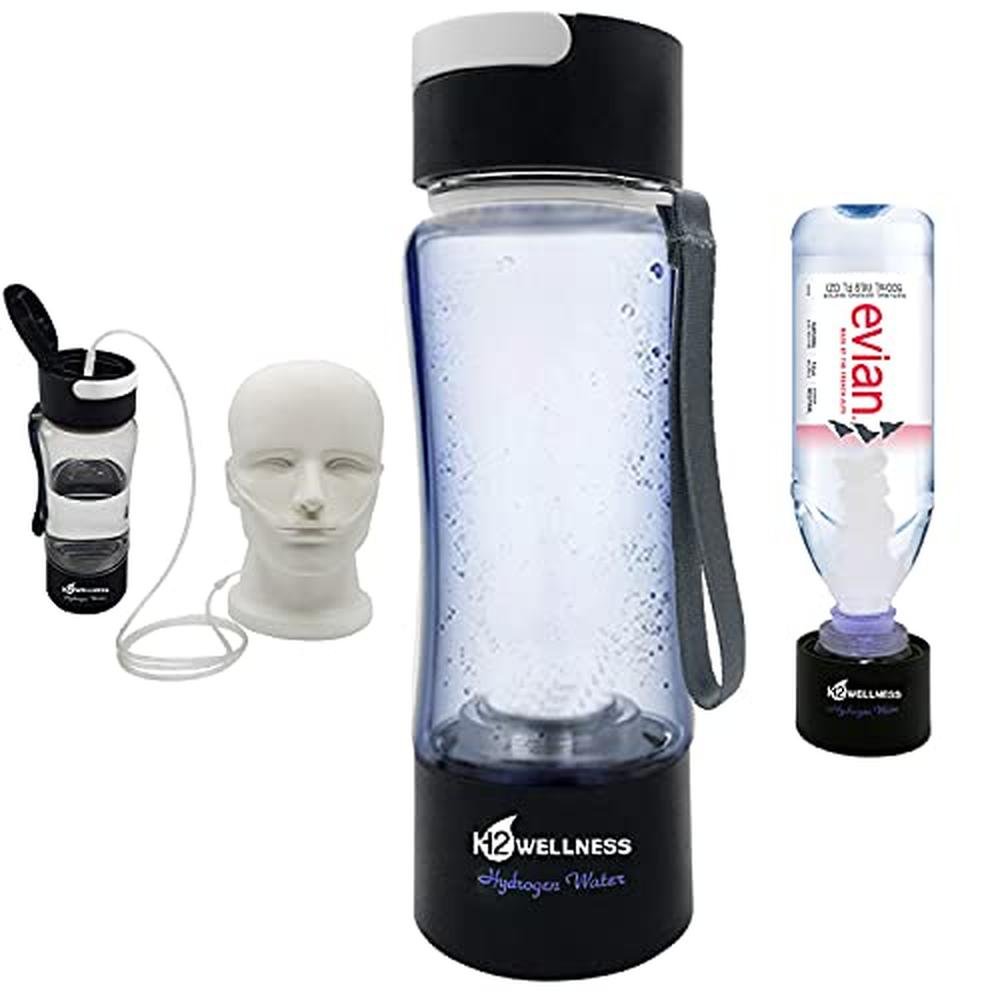 H2Wellness - Molecular Hydrogen Water Bottle, 400ml Portable Hydrogen Water Maker, Hydrogen Water Generator with Portable Inhaler Adapter and Self-Cleaning Mode, Black Tritan
