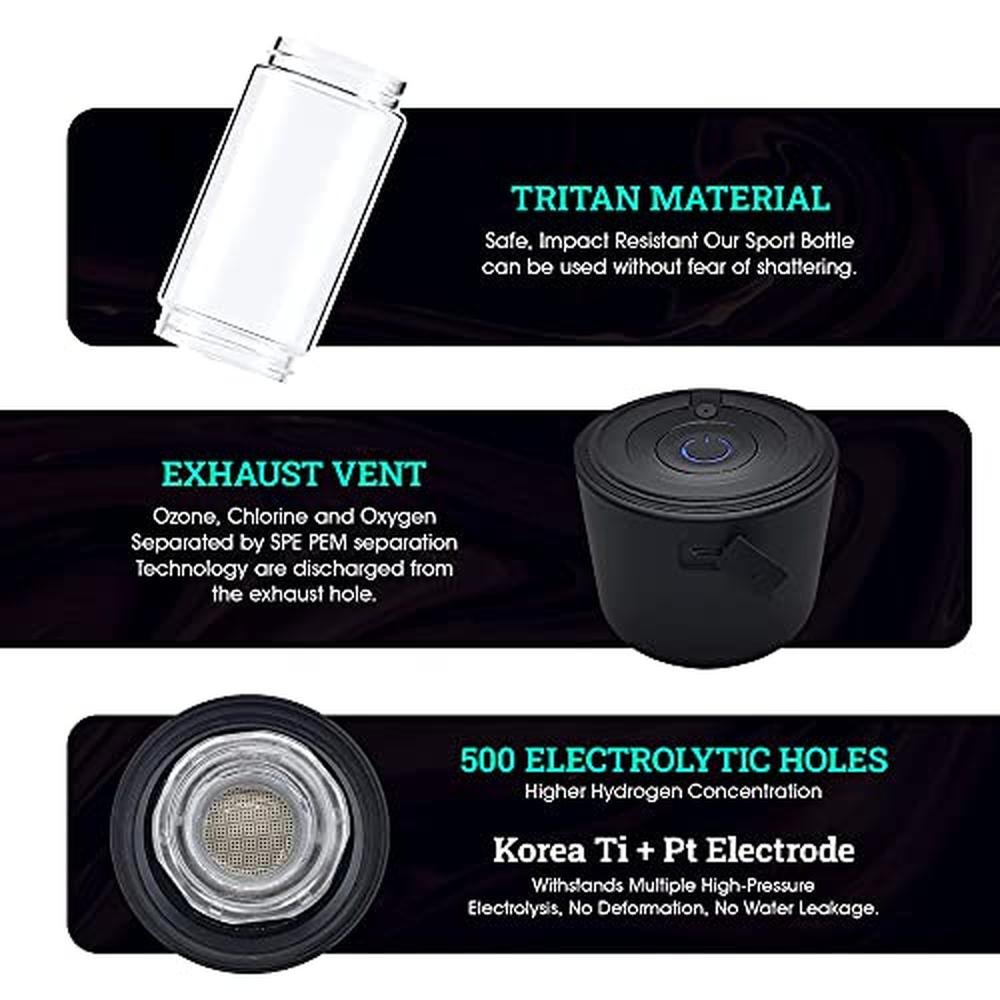 • For People on the Go - This hydrogen water generator runs on an 1800 mAh battery capacity. With a portable inhaler adapter and self-cleaning mode, it allows you to enjoy hydrogen-rich water anytime, anywhere.