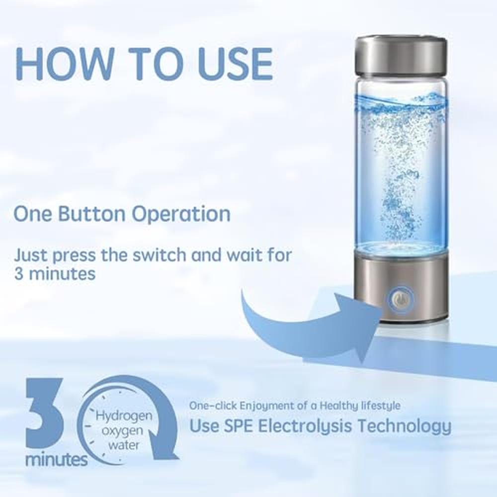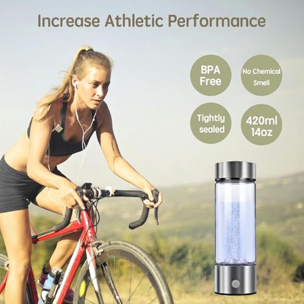 Hydrogen Water Bottle, Hydrogen Rich Water Maker with SPE PEM Technology - 14oz Portable Hydrogen Generator, Glass Liner, Rechargeable Ionizer for Health, Fitness, Travel