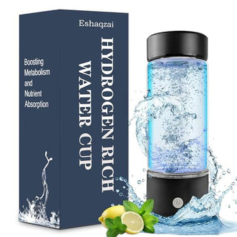 Unlock the power of hydrogen-rich water with the Eshaqzai Hydrogen Water Bottle. This innovative 14oz portable glass bottle utilizes SPE PEM technology to generate hydrogenated, infused drinking water with up to 800ppb of hydrogen in just 3 minutes. Enjoy the potential benefits of hydrogen-rich water, such as improved hydration and antioxidant properties, anytime, anywhere. The sleek borosilicate glass design ensures durability and easy cleaning, while the compact size makes it perfect for on-the-go use. Elevate your hydration routine with the Eshaqzai Hydrogen Water Bottle and experience the refreshing taste of hydrogen-infused water.
