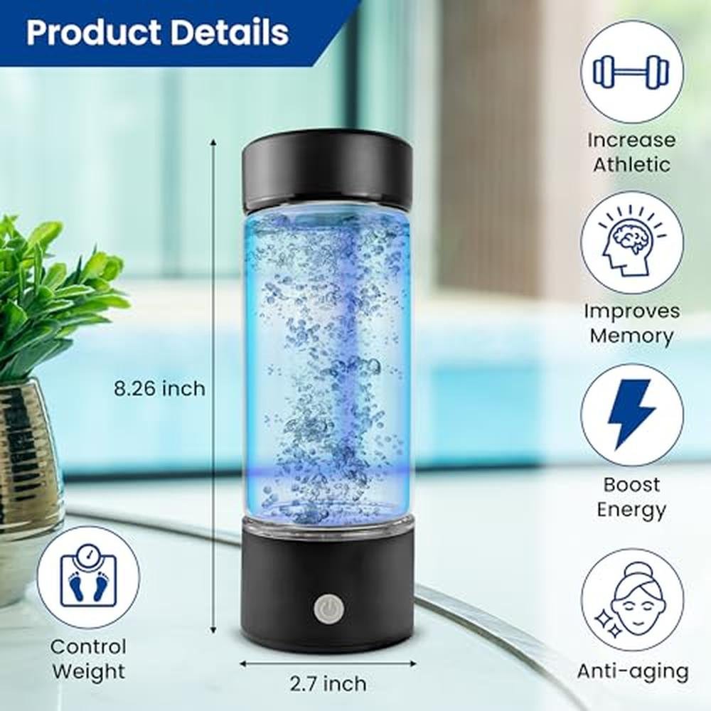 - Portable Design: Compact and lightweight, making it easy to carry and enjoy hydrogen-rich water on-the-go.