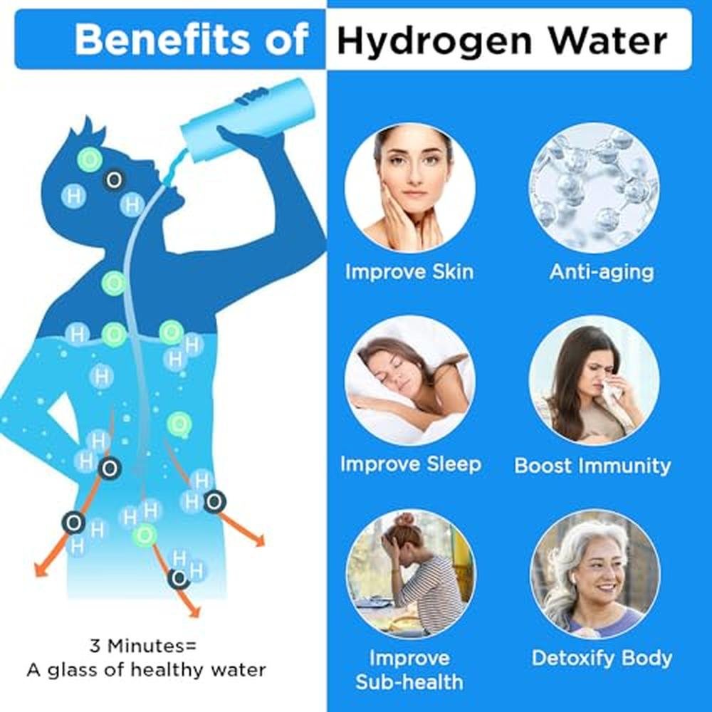 - [USB-Powered Convenience] Equipped with a USB interface, charging is a breeze. You have the flexibility to charge directly using an adapter, connect to your computer, or utilize a power bank. With a charging time of 2-3 hours, you can produce approximately 10-12 cups of hydrogen water per full charge.