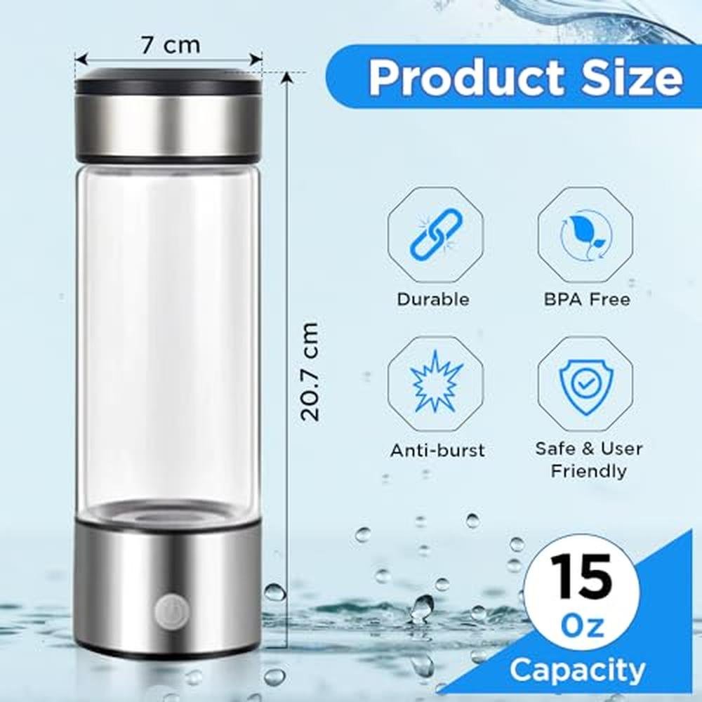 M8KI 15 oz. Hydrogen Water Bottle Portable Hydrogen Water Ionizer Machine USB Rechargeable Hydrogen Water Generator Hydrogen Rich Water Glass Health Cup for Home Travel