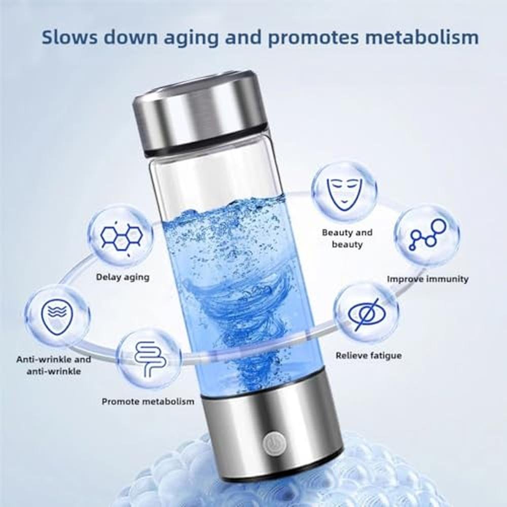 Heal Your Body, Protect Your Health with Hydrogen-Infused Water Why choose our hydrogen water bottle? - Advanced Technology: SPE & PEM electrolysis ensures purity. - Platinum-Plated Filters:5 layered filters for top-quality water. - Antioxidant Boost: Up to 6000+PPB of molecular hydrogen. - Promotes Vitality: ORP change of -600mV enhances cellular health. - Refreshing Hydration: Crisp taste for revitalization. SPECIFICATION: Name: Hydrogen Water Bottle Bottle Shape: cylindrical Capacity: 14.2 OZ Color: silver SPE technology Pacakage Include: 1/2* Hydrogen Water Bottle NOTE: 1. Please allow 1-2cm differs due to manual measurement 2. Due to the different display and different light, the picture may not show the actual color of the item, Thanks for your understanding