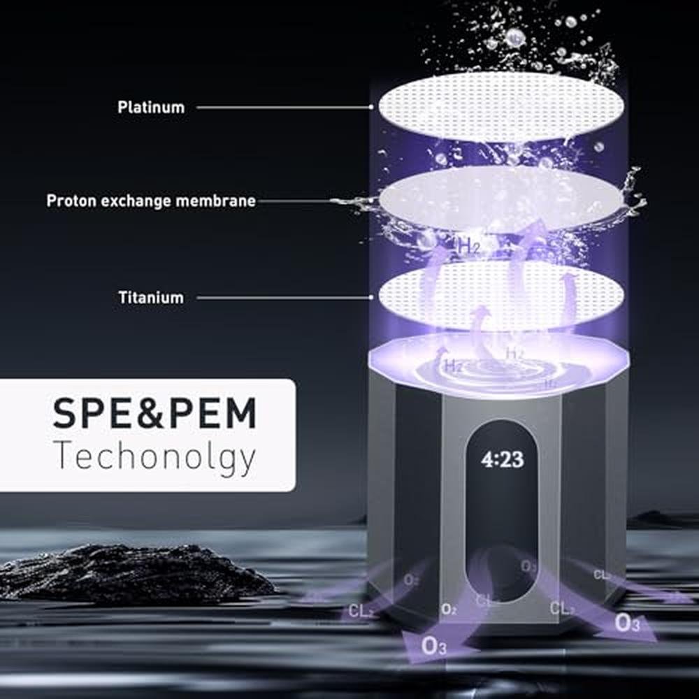 - Safety: Compared with other hydrogen water bottles in the market, RAMIFYAI uses pure physical hydrogen production (SPE and PEM technology), which is safer. And we use high-quality proton membraneos, which makes bottle product denser hydrogen. Compared with other hydrogen water cups in the market, our proton membrane surface has an additional layer of platinum, which make the water more fresher and better taste.