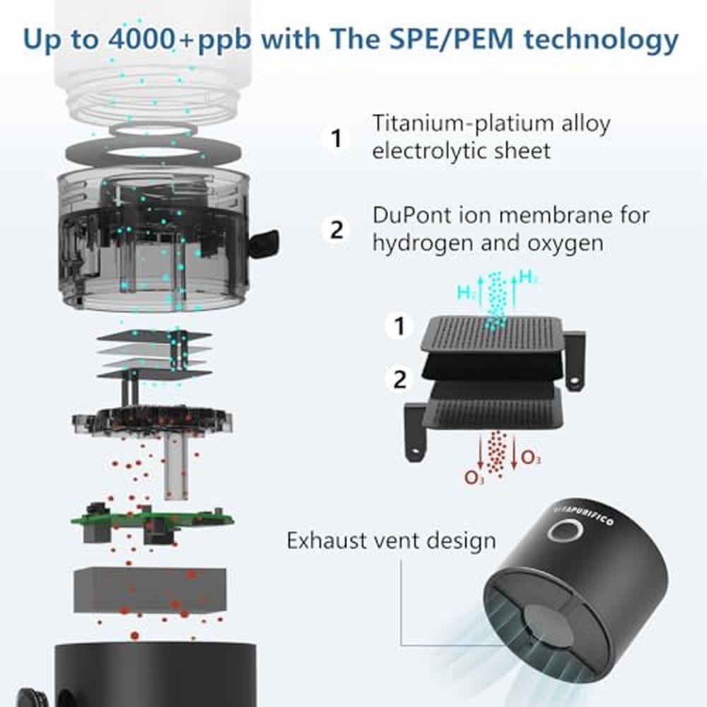 - SPE/PEM Tech Pure & Safe Hydrogen - Vitapuritico uses SPE/PEM technology and has been certified by SGS. The hydrogen concentration can reach 4000+ppb--most beneficial for human absorption. - DuPont proton exchange membrane ensures 100% hydrogen-oxygen separation, removing harmful gases like chlorine & ozone. - Titanium-platinum alloy coating guarantees safety and stability, with no metal leaching. Assuring Vitapurifico hydrogen water bottle of producing alkaline hydrogen-rich waterhigh concentration, high purity, free from harmful gases & metal ions.