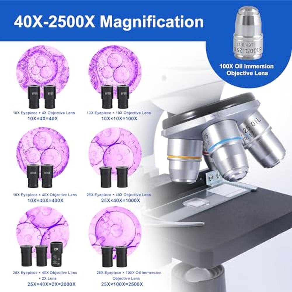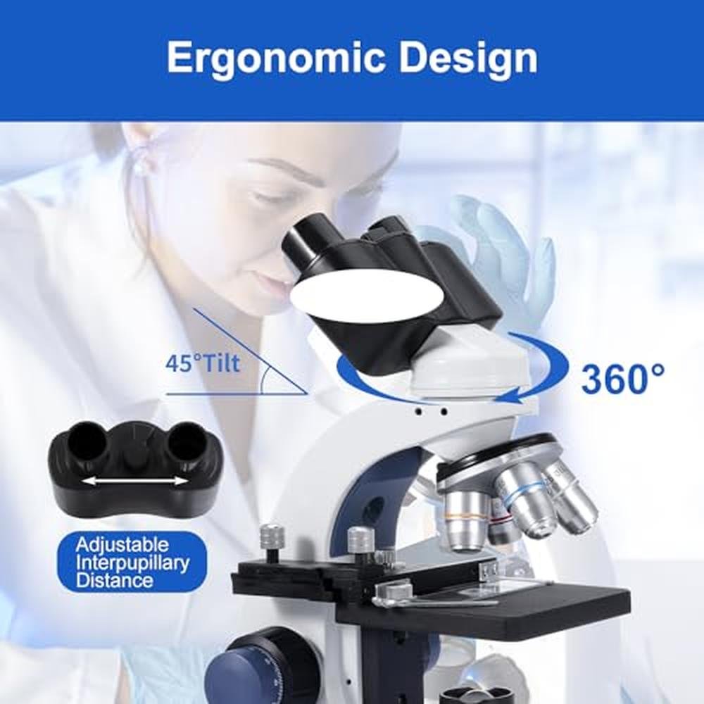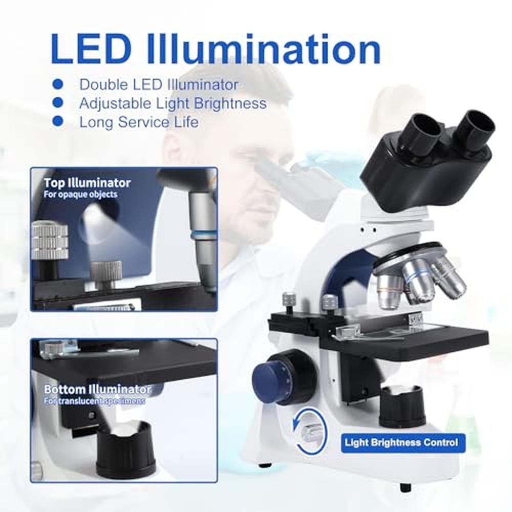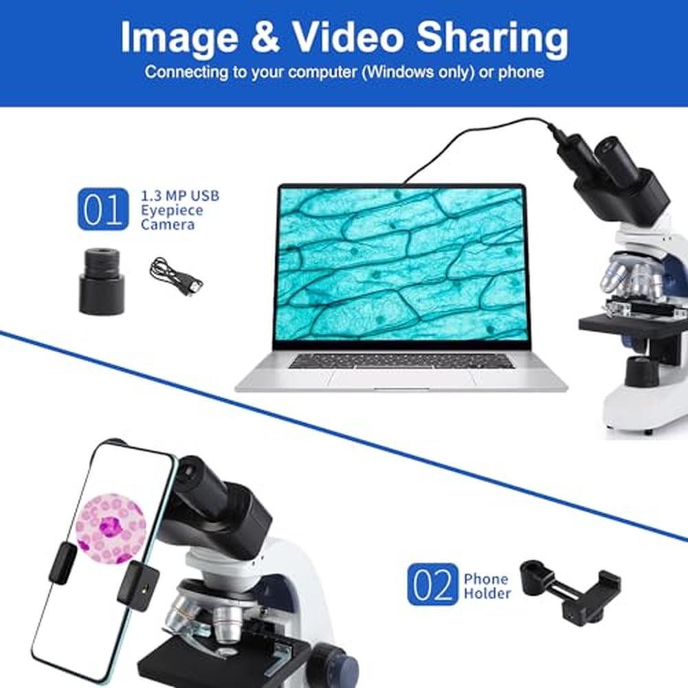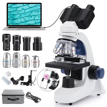 Binocular Microscope | Creahub Compound 40x-2500x | Premium Lab Microscope with 1.3MP USB Eyepiece Camera