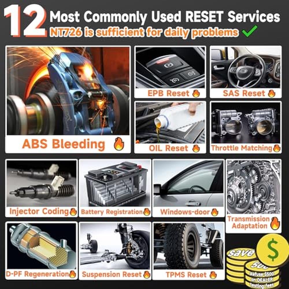 • 10,000+ Cars & AUTOVIN, FCAAs a premium mid-range diagnostic tool, the NT726 supports vehicle diagnosis across multiple regions and brands. Whether conventional vehicles like BMW, Mercedes-Benz, GM, Nissan, Ford, or specialty models such as Dodge and Chrysler, the NT726 handles them all. For both professional technicians and DIYers, the NT726 represents a high-value diagnostic solution.