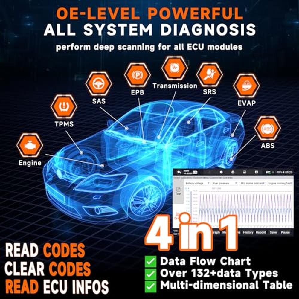 • 12 Hot MaintenancesThis bidirectional auto scanner can perform ABS Bleeding, Oil Reset, EPB Reset, SAS Calibration, D-PF Regen, TPMS Reset, Injector Coding, Throttle Matching, Window/Door Control, Transmission Adaptation, Suspension Reset, and Battery Registration on multiple vehicle models. From safety braking to emission optimization, from precise powertrain calibration to comfort system control, it comprehensively addresses the intelligent maintenance needs of modern vehicles.