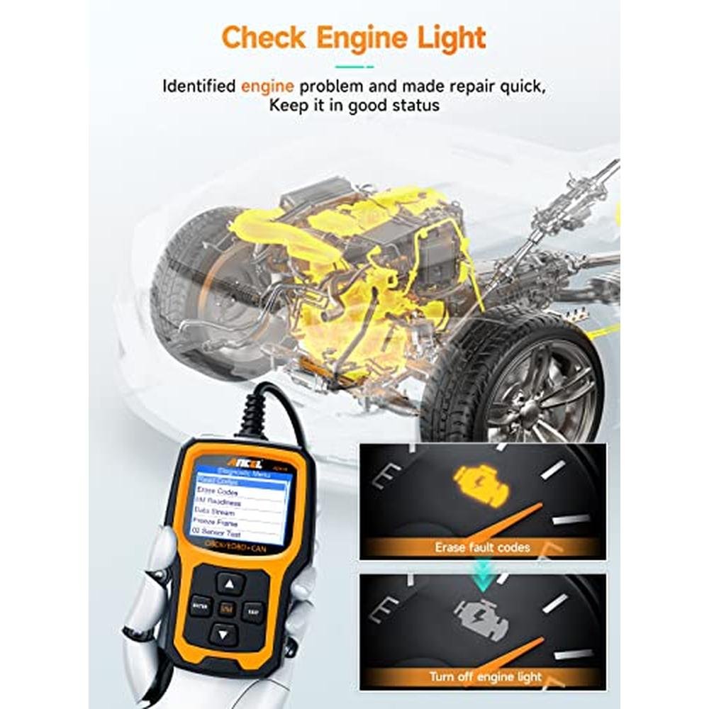 ANCEL AD410 Enhanced OBD2 Scanner, Vehicle Code Reader for Check Engine Light, Automotive OBD II Scanner Fault Diagnosis, OBDII Scan Tool for All OBDII Cars 1996+, Black/Yellow