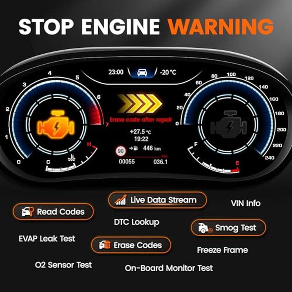 • User-Friendly Functions: This car scanner diagnostic tool delivers professional diagnostics in 3 simple stepsjust plug into the OBD port-power on-scan. Exclusive dual shortcuts simplify diagnostics. Press the I/M button for instant sm0g checks while the 'i' key instantly decodes 35,901+ SAE DTCs (like "P0108" indicating manifold absolute pressure) with plain definitions and repair advice. With this intuitive tool, anyone can become a car repair expert in 30 seconds
