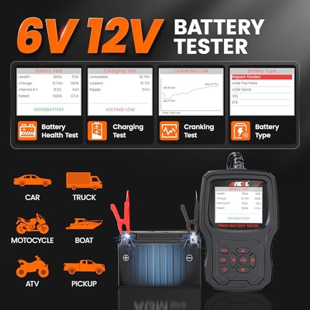 2024 Upgraded 2 in 1 OBD2 Scanner Battery Tester,Most Comprehensive Vehicle Doctor Most OBD2 scanners on the market only have OBD2 functionality.The AD530 Pro+ OBD2 scanner is an upgraded version of the AD310 AD410 AD530,which is not only a basic vehicle code reader but also a professional 6V/12V battery tester. It can test lead-acid batteries with a CCA range of 100 to 2000,perform battery testing, charging testing,and starting testing.Making it an extremely cost-effective diagnostic tool.