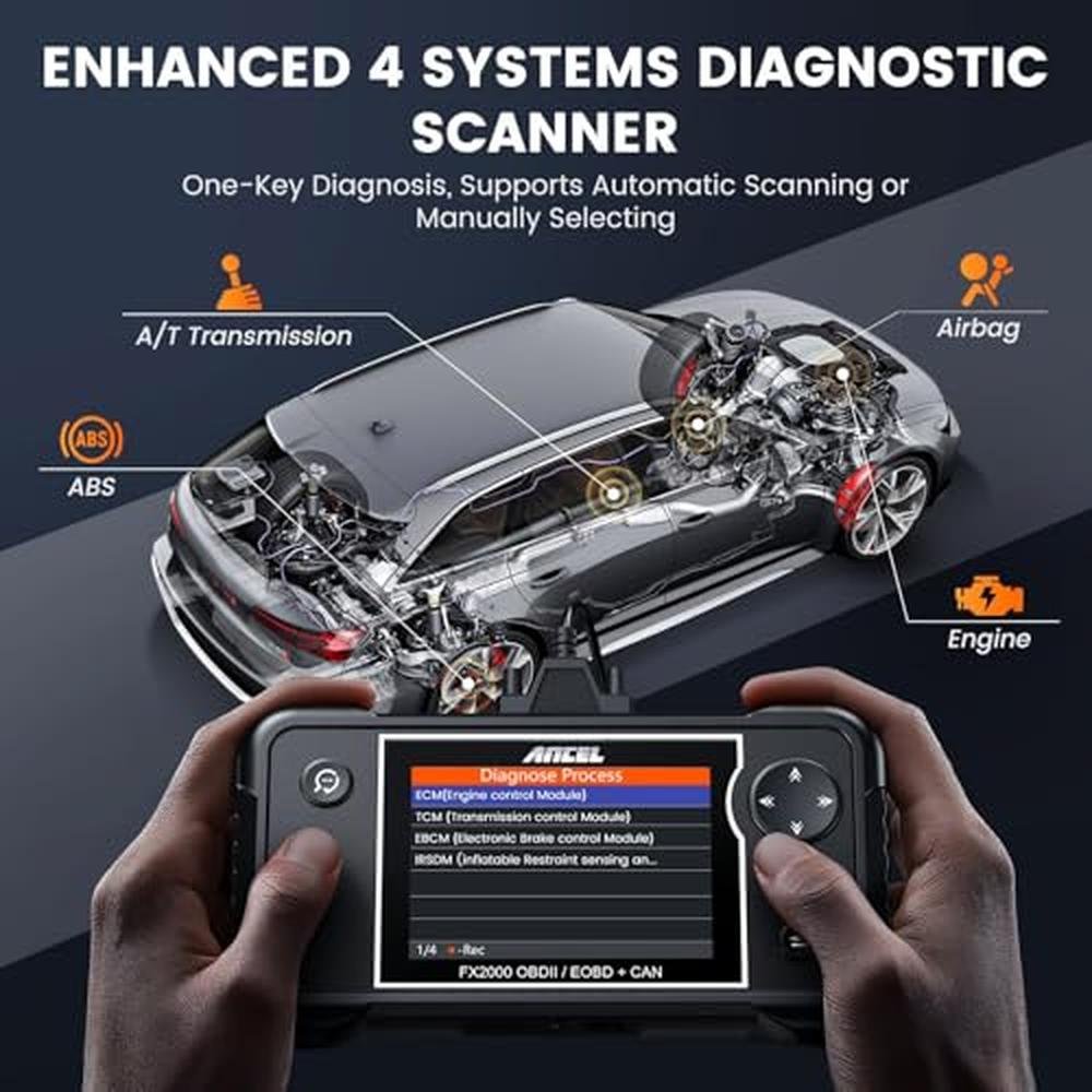 - SPRING ROAD TRIP RESCUE: Dashboard lights flashing like a disco? Dont let mystery codes ruin your blossom chase! ANCEL FX2000 OBD2 Scanner brings you a scan like a prono mechanic degree needed. Fix engine/ABS/airbag/transmission warnings before hitting scenic routes. Zap false alarms post-fix (goodbye panic-inducing beeps!). If you are equipped with accurate information, you can avoid auto repair scams. No training is required. Spend less time stressing, more time chasing wildflowers!