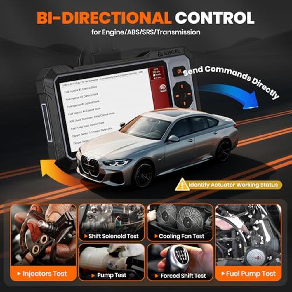 - ANCEL'S New Bidirectional Scan ToolGet active test capabilities for ABS, SRS, Transmission, and Engine systems. FX6000 Elite bidirectional scanner enable targeted tests on individual actuators to swiftly identify and resolve issues. Covering coolant pump, speaker, fuel injector and fuel pumpe. etc. This scanner transforms complex vehicle diagnostics into 1-click solutions. No more guessing if that fuel injector worksprove it instantly!