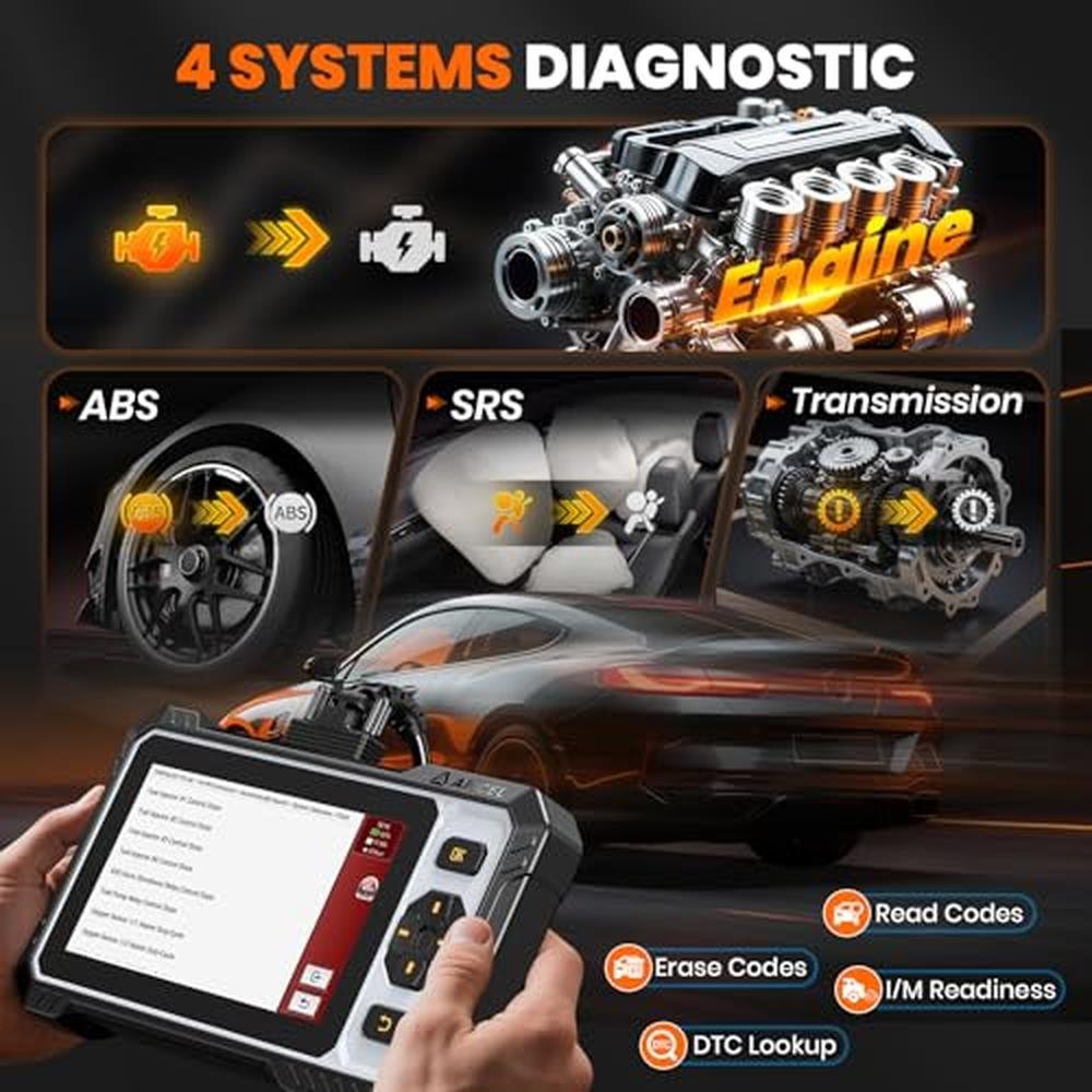 - Smart VIN Decoding & 4-System ScanThis obd2 scanner automatically scans VIN in 2 SecsNo More Manual Headaches! Dive into Engine, ABS, SRS, and Transmission systems with surgical precision. Read/clear codes, track live data in graphs, and onboard DTC library lookup. Ideal for mechanics, diagnose 5x faster than basic scanners! TIPS: Airbag fault codes can not be cleared even you replace the new airbag.