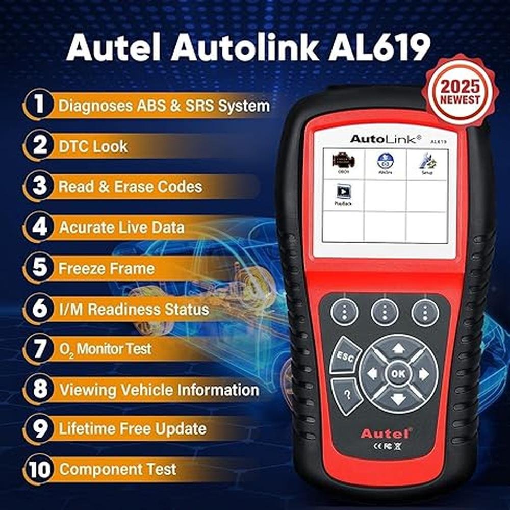 Autel AutoLink AL619 Scanner, 2025 ABS SRS Airbag Warning Light Diagnostic Scan Tool, Up of AL519 ML519 ML619, 10 OBDII Test Modes, DTCs Lookup, Live Data, Turn Off Check Engine Light OBD2 Code Reader
