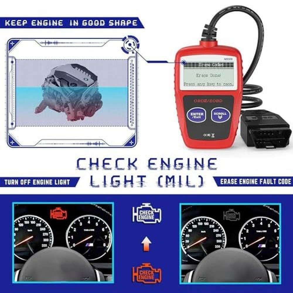 • Turn Off Check Engine Light: When your car detects an emission related problem, the check engine light will be turned on. maybe it's just a fuel cap that's not screwed on or bad parts like spark plugs, ignition coils, etc. need to be replaced? Using the Autel MS309 scan tool, you can read the code to quickly find out why the check engine light is on and reset it.so you can save money
