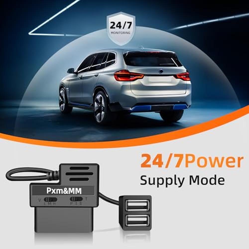 - 24/7power supply mode,The OBD constant power cable time setting in P mode,it will continue to supply power to the dashcam,just with the basic dashcam you can also Implement 24-hour parking monitoring function [Note] The voltage drops below the set voltage,the power cable will cut off the power supply to the dashcam