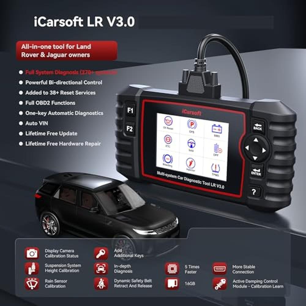 iCarsoft LR V3.0 2025 Ver Bidirectional OBD2 Scanner for Most Land Rover/Jaguar from 1996-2023 Full Systems Diagnostic Scan Tool 37 Service/118 Graphic Data Engine Transmission ABS Car Code Reader