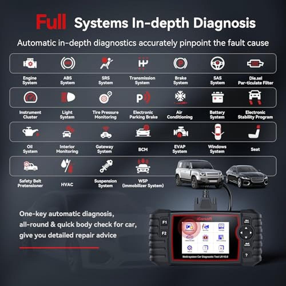 • All-In-One LR V3.0 2025 VersionLR V3.0 2025 VERSION, upgraded its software and process chip to in-depth diagnosis and 5 times faster diagnostics, with 37+ more special service functions. Be feature-richsupport Full System Diagnosis, Powerful Bi-directional Control, 37+ reset services,Full OBD2 Functions, Auto VIN, One-key automatic diagnosis, Lifetime Free Update, Lifetime Free hardware repair. Cost-effective for JLR owner. Since the number of functions supported by the product varies in different car models, please contact us to check compatibility