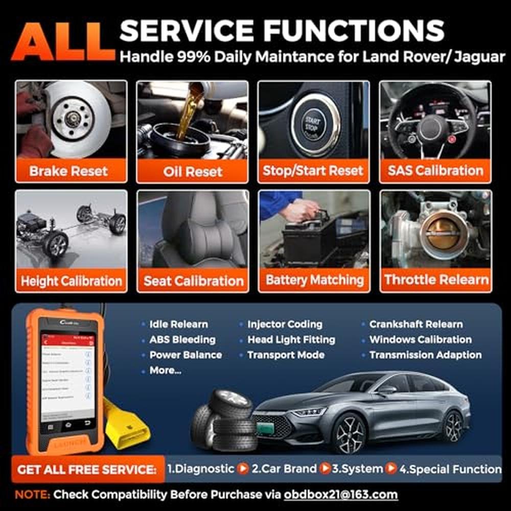 • All Maintenance Services for LRJ2025 LAUNCH Creader Elite for Land Rover & Jaguar diagnostic scan tool comes with ALL special functions to save your ton of repairing money from dealership, such as Oil, EPB, TPMS, SAS, Battery Reset, Throttle Relearn, ABS Bleeding, Injector Coding, Height Calibration, Transmission Adaption, Crank Relearn, Seat Calibration, etc. Get All services from "Diagnose>Brand>System Selection>Special Function". Check compatibility via obdbox21 @ 163 . com firstly.