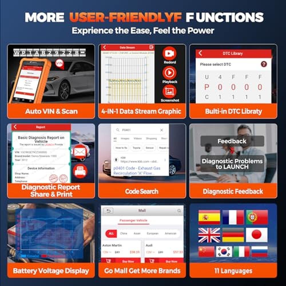 • All In One Functions In Your Hand 2025 LAUNCH Creader Elite OBD2 Scanner for Land Rover Jaguar, comes equipped with Android 6.0 OS & 4'' Touchscreen, smooth & fast. Also be feature-rich, supported OE-Level Full System Diagnosis, All Reset Services, Powerful Bi-directional Control, Height Calibration, 10 Full OBD2 Functions, Auto VIN, 4-in-1 Data Stream Graphing, Online Feedback, Lifetime Free Update, etc. A Must Have for JLR Owner. *Check compatibility firstly via obdbox21 @ 163 . com.