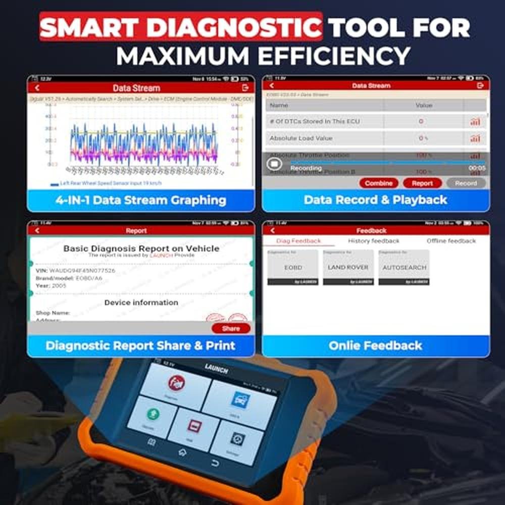 • A MUST HAVE DIAGNOSTIC TOOL FOR JLR OWNERUpgraded of LAUNCH Creader Elite, 2025 LAUNCH Creader Elite V2.0 for Land Rover Jaguar diagnostic tool offers enhanced hardware and superior features. Improved Android 8.1, 4'' Touchscreen, larger 3000mAh battery, 2+16GB, fast boot-up to make diagnostic Smoother & Faster. Superior features: In-depth OE Full System Scan, Enhanced Bi-directional Control, All Services, Auto VIN, 4-IN-1 Data Graphing, Lifetime Free Update. All in one functions at Your Fingertips.