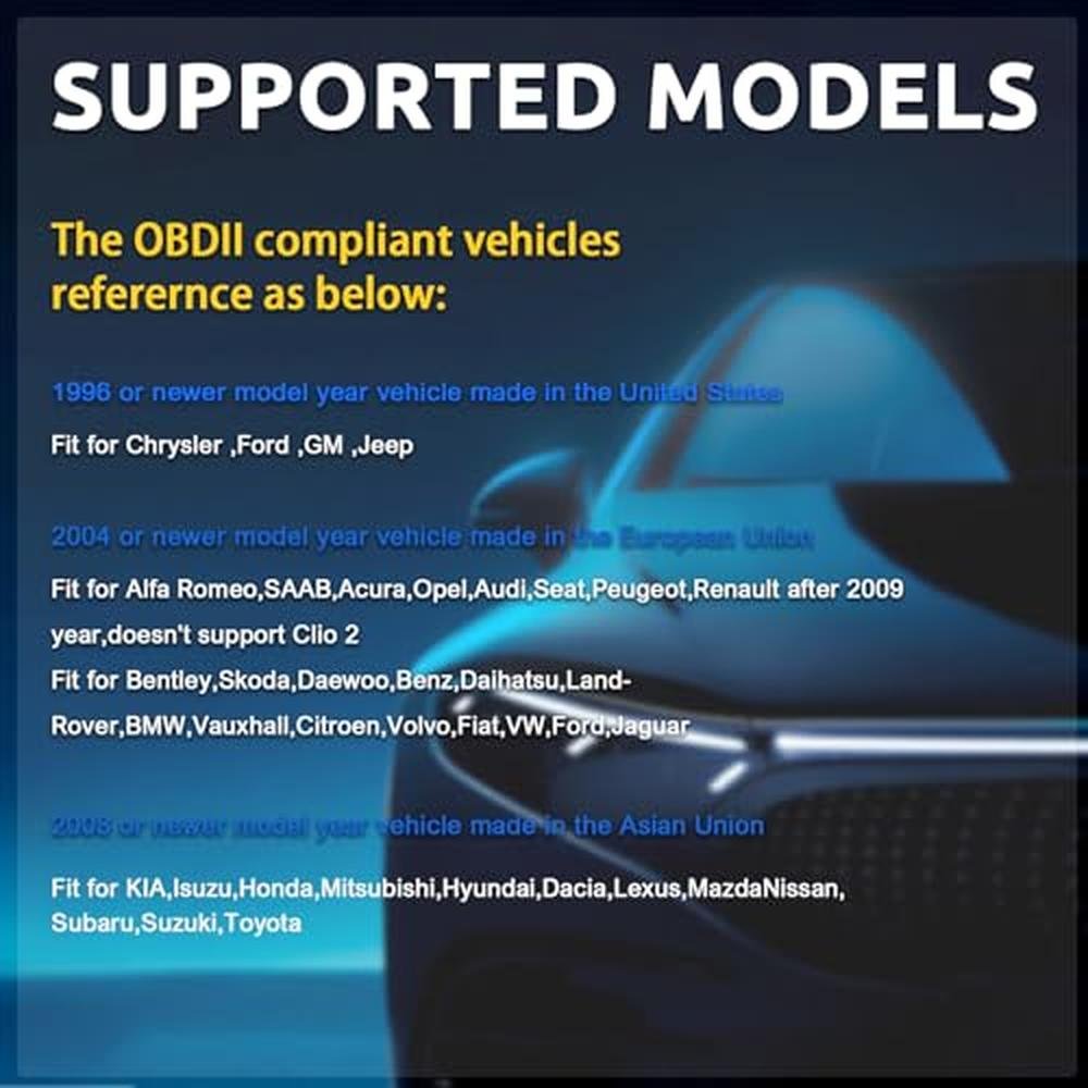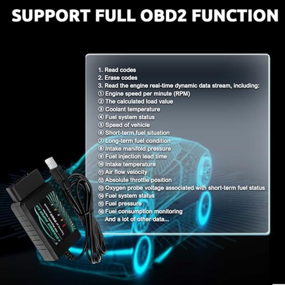 • Multiple FunctionThis elm327 can read fault codes & clear check engine lights, access all electronic control units: engine, gearbox, ABS, climate control, etc.What's more, you can access and apply these to your vehicles: the Global Window Mod, Bambi Mod, reverse tilt mirrors, tire size correction, Perpendicular Park, Secure Idle, 5 turn signal flash, heated steering wheel, disabled double horn honk, disabled door ajar chime and more.