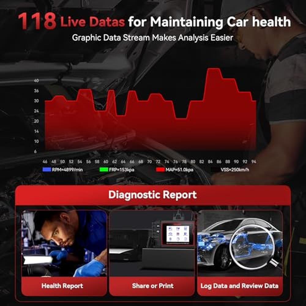 - Full-System Diagnostics & Live DataReady to use with no updates needed, the 2025 POR V2.0 offers deep module-level diagnostics beyond just Engine/ABS/SRS/Transmissionaccessing full ECUs available like TPMS, battery, HVAC, steering, windows, steering, ESP, and more. 2025 POR V2.0 can instantly obtain crucial vehicle details for expedited diagnostic processes, reading VIN/calibration verification number (CVN) /module info/ DTC library, streams live data in graphs, and diagnostic data record/ custom report for efficient, in-depth troubleshooting.