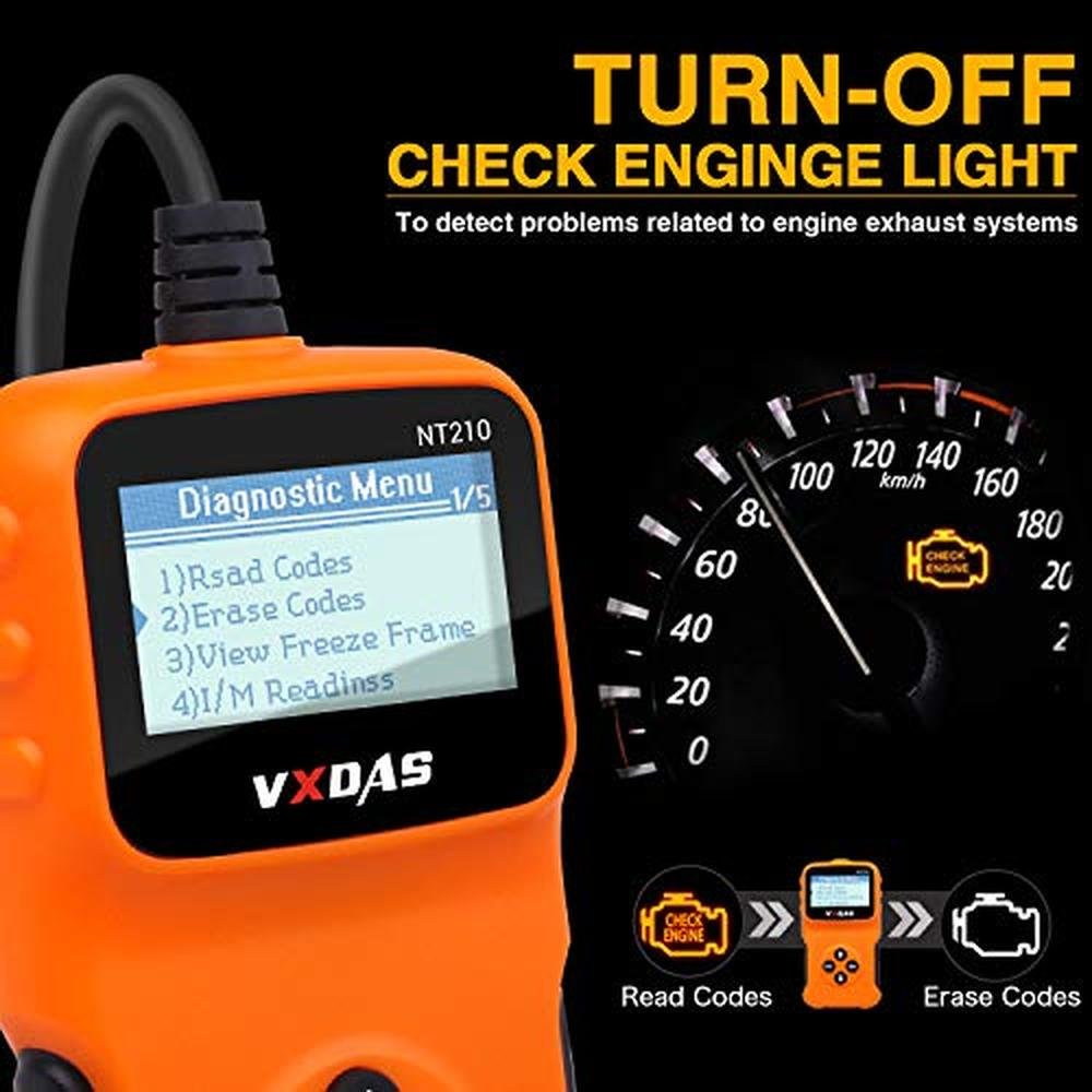 MIL TURN-OFF: OBD2 code reader VXDAS NT210 supports reading and clearing codes stored in vehicle ECU about partial Engine and Transmission faults, and it makes great sense in the check engine light turning off after the maintenance. I/M READINESS CHEKING: The I/M readiness status checking works on the sensors related to emissions, checking the sensors running status to figure out whether your vehicle pass the emission test or its time to have your vehicle maintenance. DATA RETRIEVAL: Freeze frame data retrieving checks the certain vehicle conditions which are recorded by the on-board computer at the time the emission-related fault occurs, and vehicle identification number retrieving helps users identify vehicle information. SUITABLE VEHICLES: Code reader VXDAS NT210 is suitable for most 1996 US-based, 2000 EU-based and newer vehicles that is equipped with 16pin port and is compliance with OBD2,EOBD/CAN protocols.