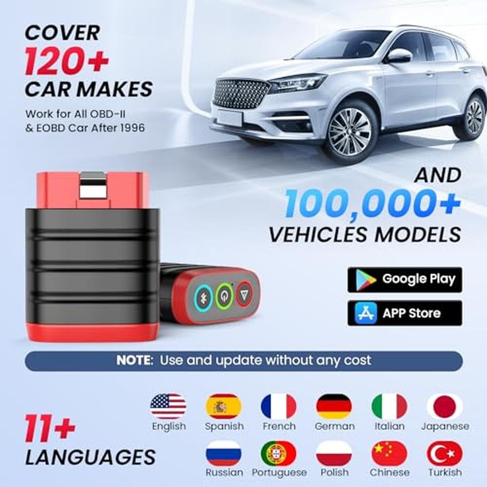 THINCAR Thinkdiag Mini Bluetooth OBD2 Scanner Diagnostic Tool, OE Full-System Car Scanner for iOS & Android, Check Engine Light Fault Code Reader & Scan Tool for All 1996 & Newer Vehicles, Free Update