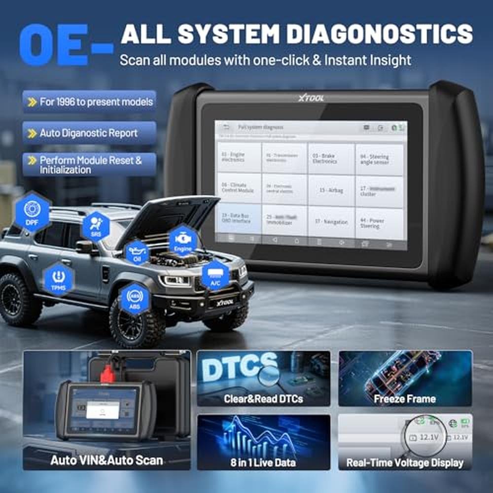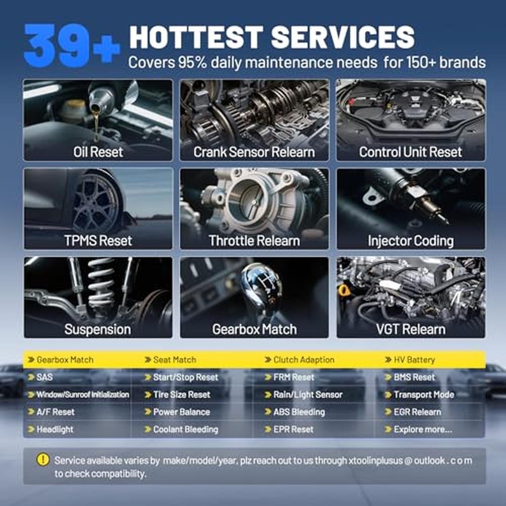 - 39+ Reset Service for 95% of Repair Requirements: The XTOOL IP819 consolidates over 39 critical services into one affordable obd2 scanner diagnostic tool, including Oil Reset, ABS Bleeding, TPMS Reset, EPB reset, BMS reset, HV battery, power balance, SAS, A/C relearn, throttle, headlight, suspension, Injector Coding, Gearbox Match, Tire Size Reset, Crank Sensor Relearn, Coolant Bleeding and more. Efortlessly resolve 95% of maintenace issues with XTOOL IP819