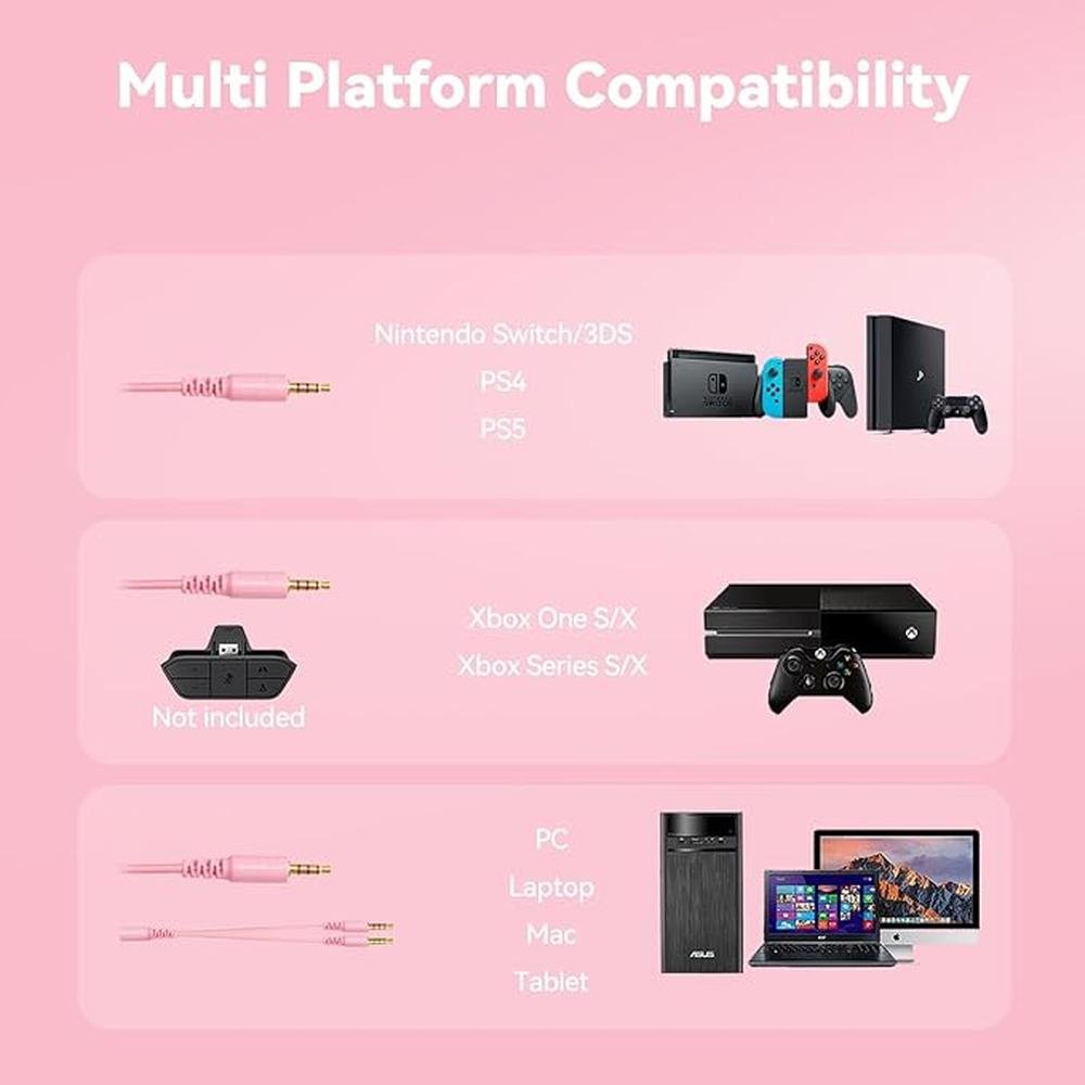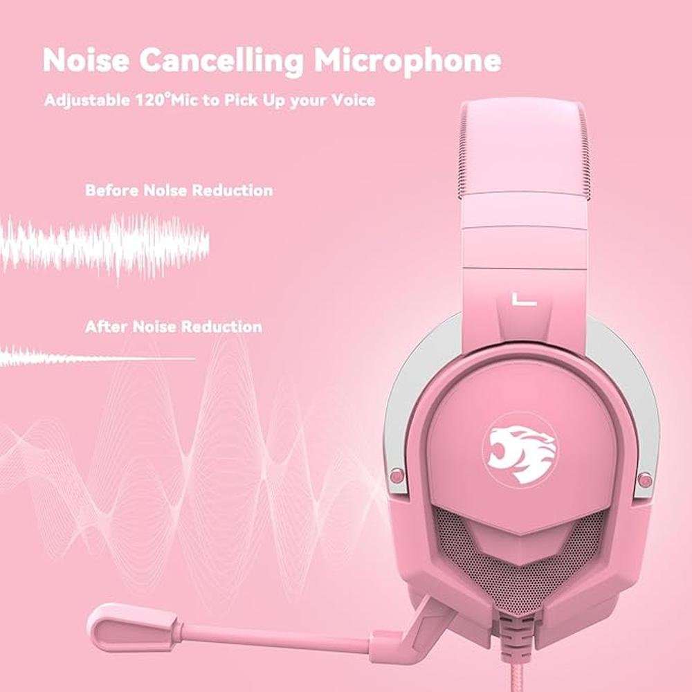 IMYB A88 Gaming Headset with Microphone, Stereo Wired Noise Cancelling Over-Ear Headphones with Mic for Pc, Ps5, Xbox One Series X/s, Ps4, Computer, Laptop, Mac, Nintendo, Gamer (Pink)